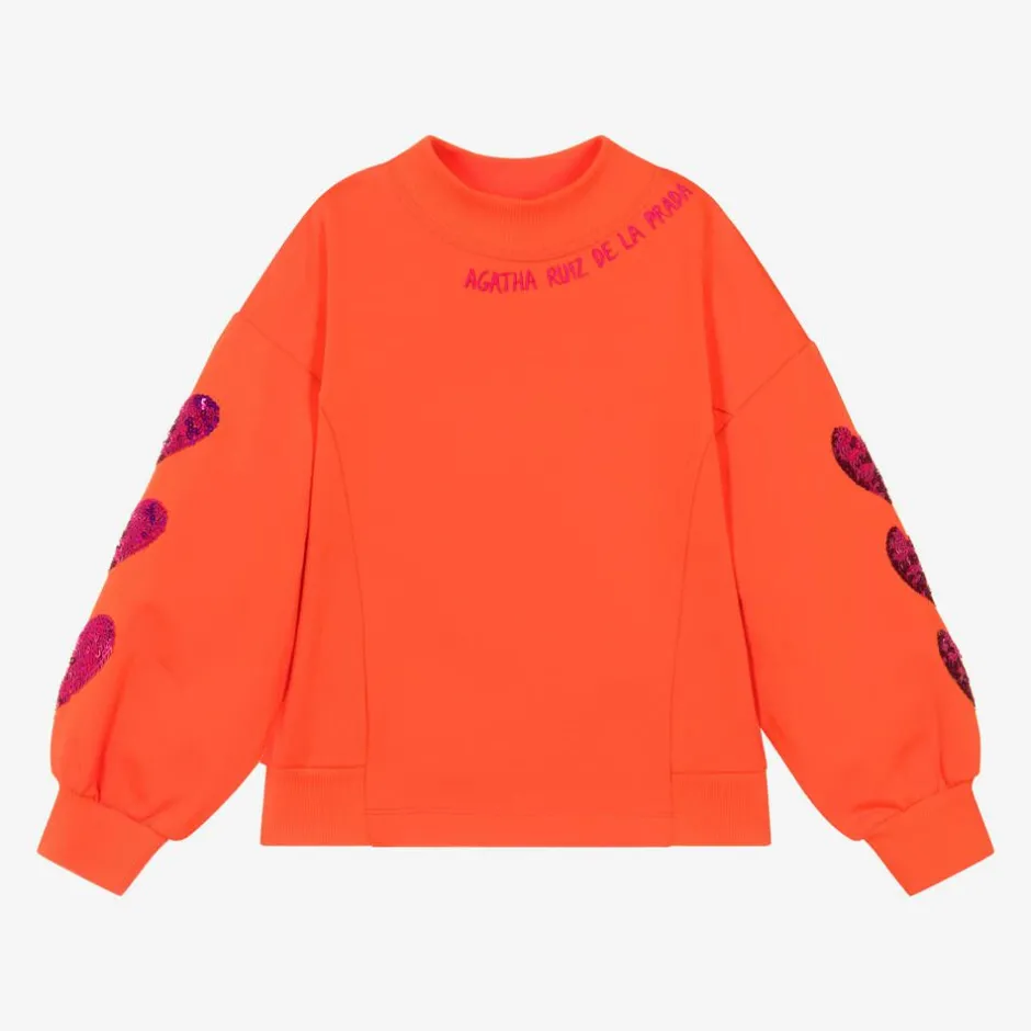 Agatha Ruiz de la Prada Girls Orange Cotton Heart Sweatshirt Discount