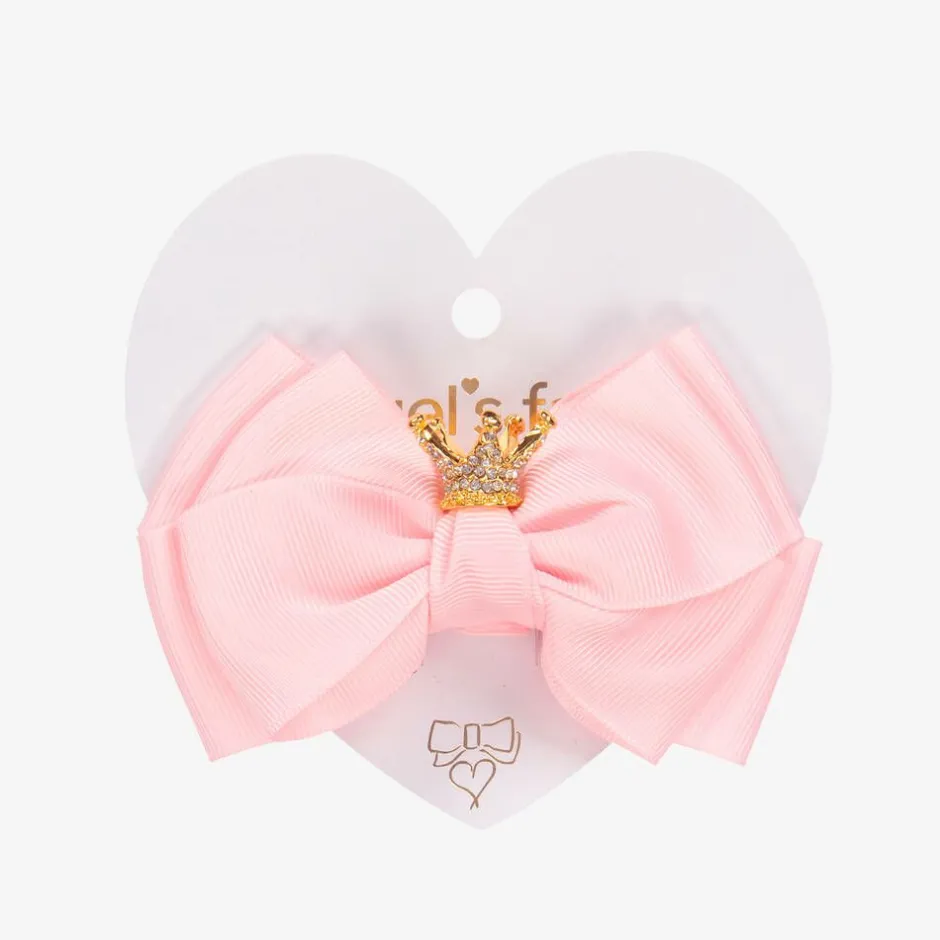 Beautiful pink bow hair clip for girls by Angel's Face, made with luxurious grosgrain ribbon. A lovely finishing touch to her special outfit, it is topped with a sparkly diamanté crown and sits on a simple clip.