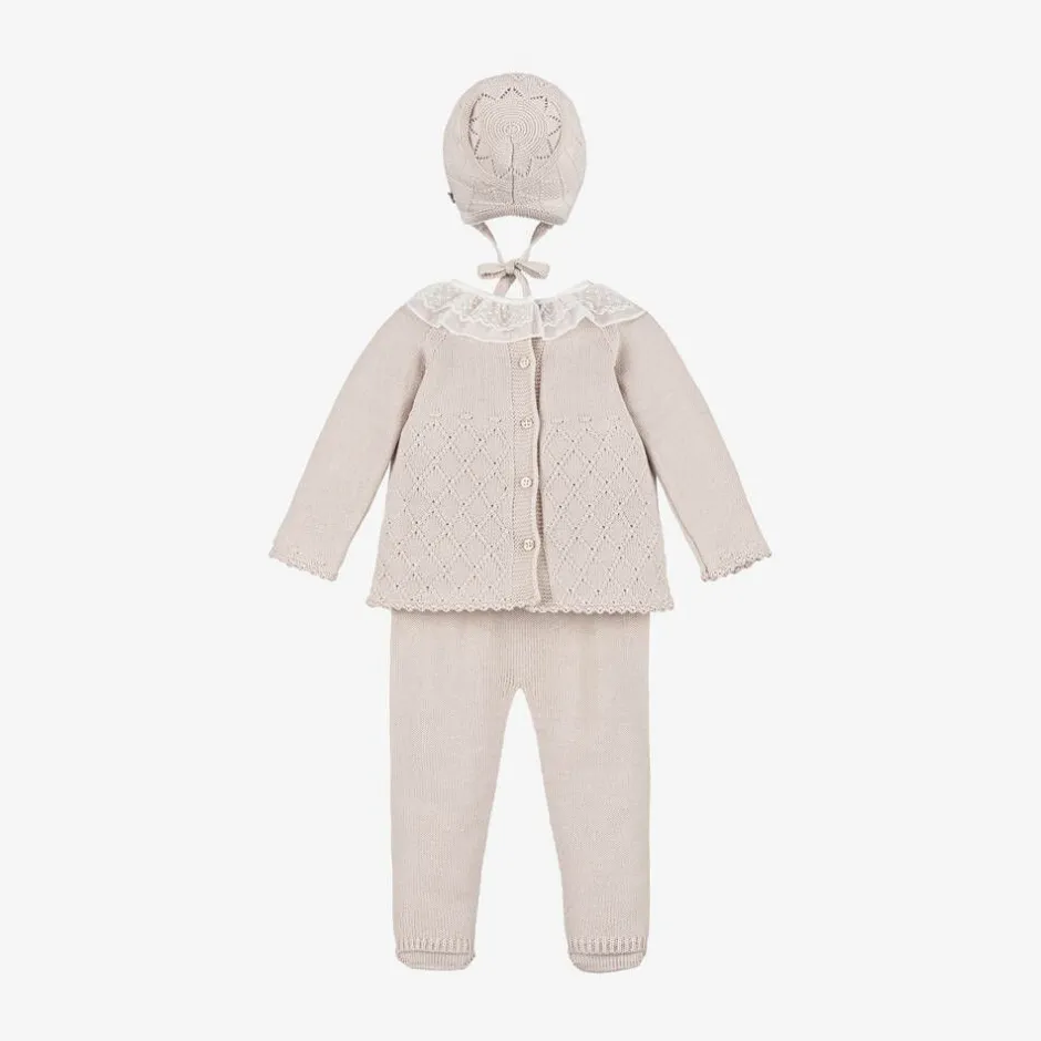 Artesanía Granlei Girls Beige Knitted Babysuit & Hat Set Best