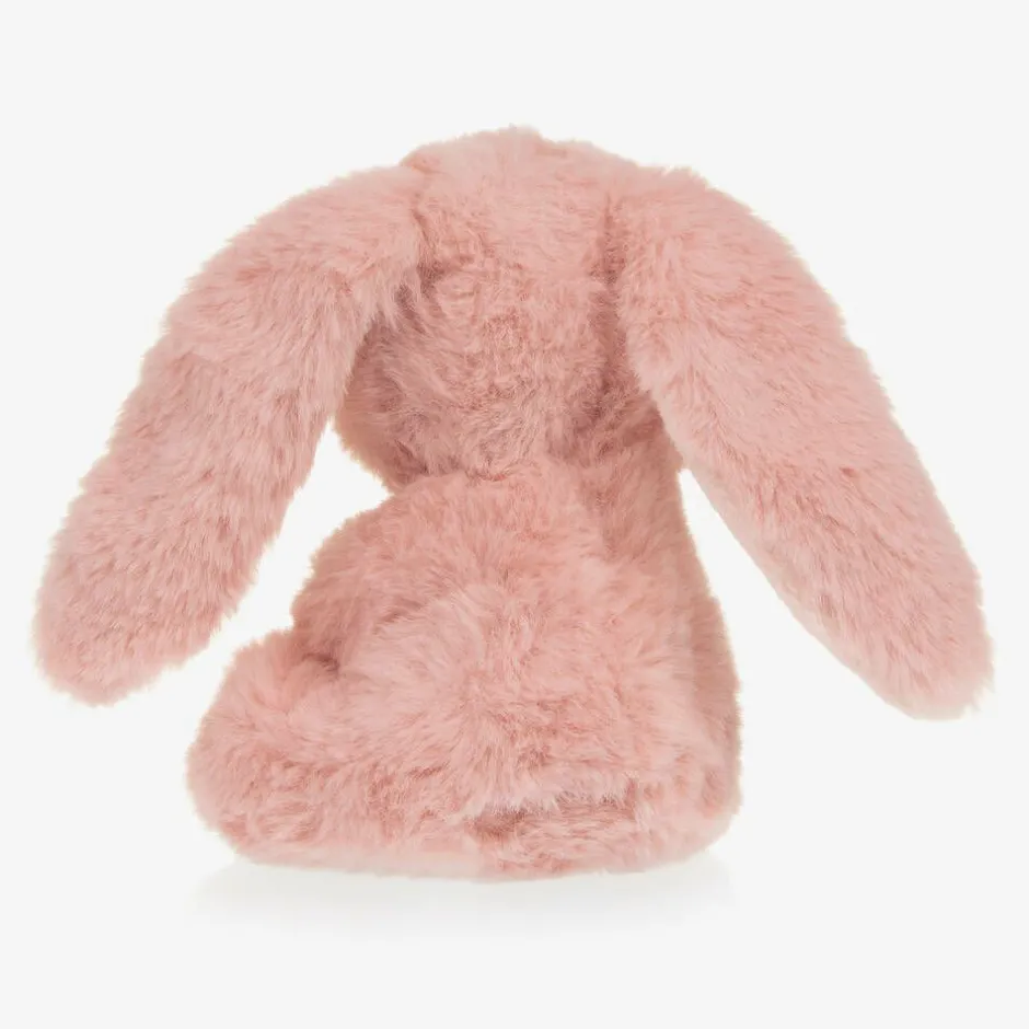 Sweet and pretty, this pink bunny rattle toy for baby girls is by Aurora. Handmade from soft velvety plush, it has a cute embroidered face and long floppy ears. Lovely for little hands to hold, it has soft padding with beads that rattle when shaken, for baby to explore new textures and sounds.