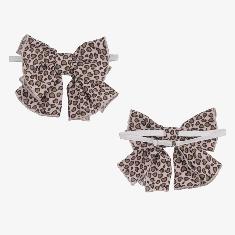 White cotton poplin shirt for girls by Balloon Chic, with a slightly fitted shape and hint of stretch. Fastening with pearlescent buttons, this classic design has a smart pointed collar. It comes with an adjustable, silky bow tie, patterned with a pretty heart-shaped leopard print in pale pink, brown and black.