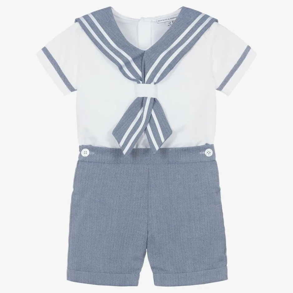 Beatrice amp; George Boys Blue Cotton Sailor Buster Suit Best