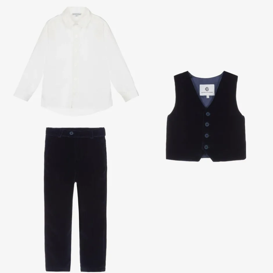 Beatrice amp; George Boys Navy Blue Velvet Waistcoat Suit New