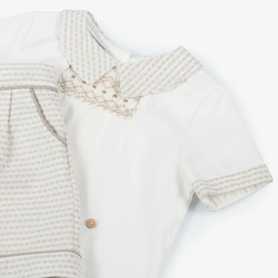 Beau KiD Baby Boys Ivory & Beige Cotton Buster Suit Sale