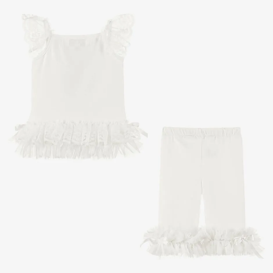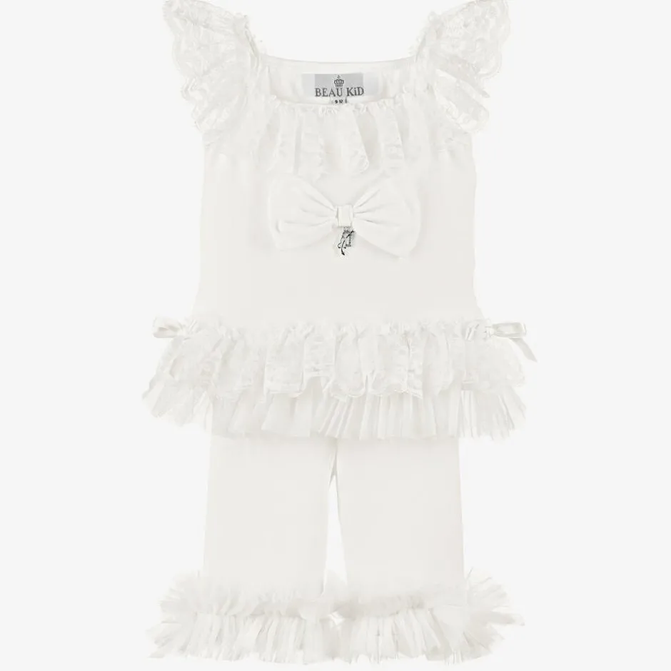 Beau KiD Girls Ivory Cotton & Lace Leggings Set Clearance