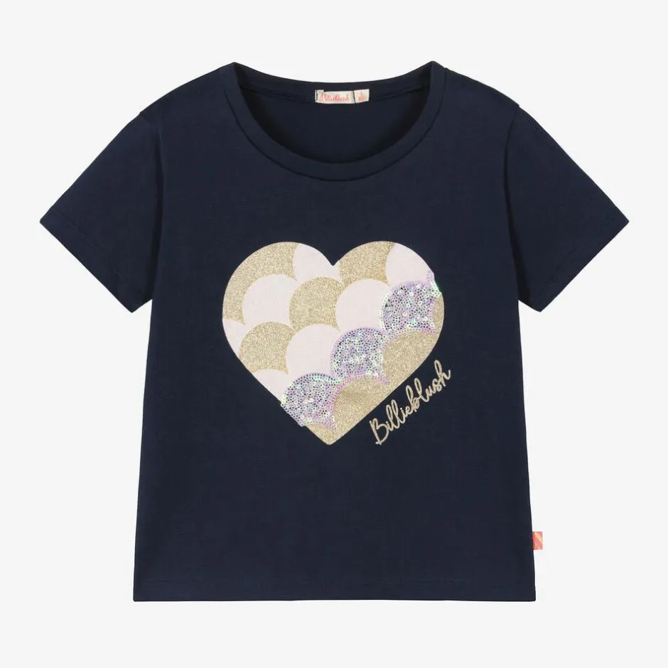 Billieblush Girls Navy Blue Cotton Heart T-Shirt Best