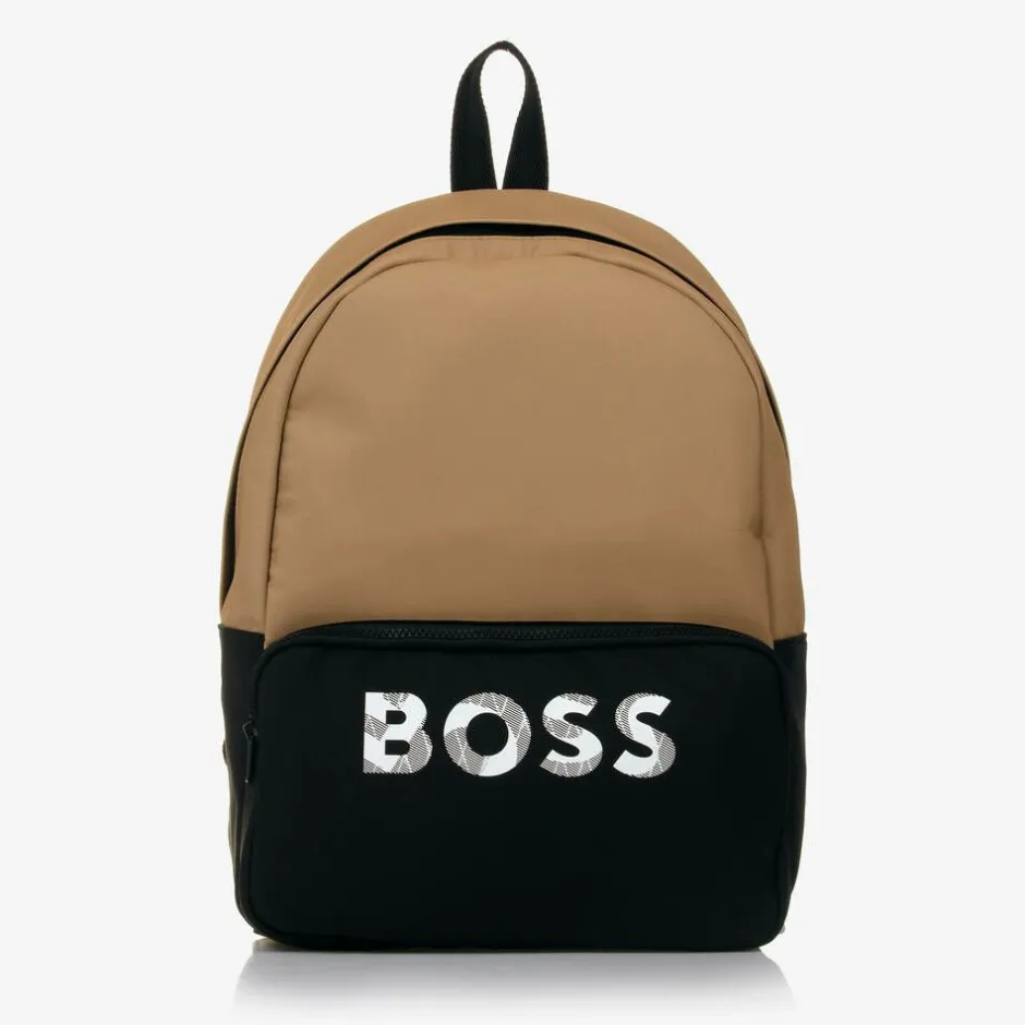 Unmistakably BOSS, this smart backpack for boys and girls is designed in the brand's signature colours of beige and black. Made in silky, textured and durable canvas, it has a spacious main compartment with a padded pouch and a useful front pocket, both secured with zip fastenings. The back and adjustable shoulder straps have padded mesh for comfort and there is a convenient carry handle.