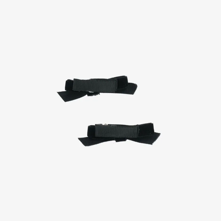 A pack of two black velvet hair clips for girls by Bowtique London, a lovely finishing touch to complete an outfit.