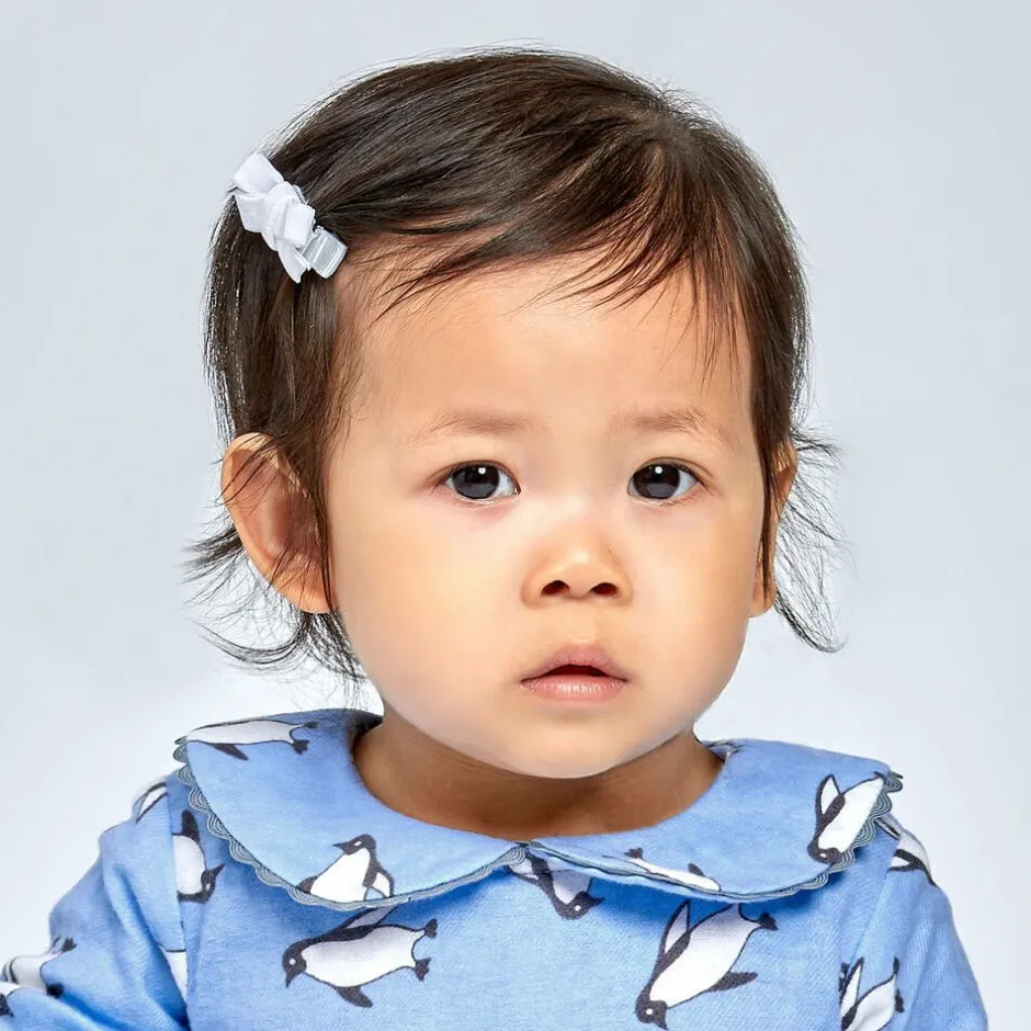 A pack of two white velvet bow hair clips for girls by Bowtique London. A lovely finishing touch to complete an outfit, the bow is set on a metal clip for easy use.