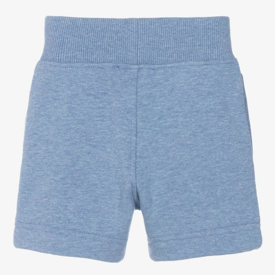 Blue marl shorts for baby boys by luxury label Burberry, made from soft mid-weight cotton jersey. Complete with discreet pockets hidden in the side seams, they have a wide ribbed elasticated waistband for added comfort. A white Equestrian Knight Design and logo lettering are embroidered on one side in a 'sketched' style for a recognisable look.