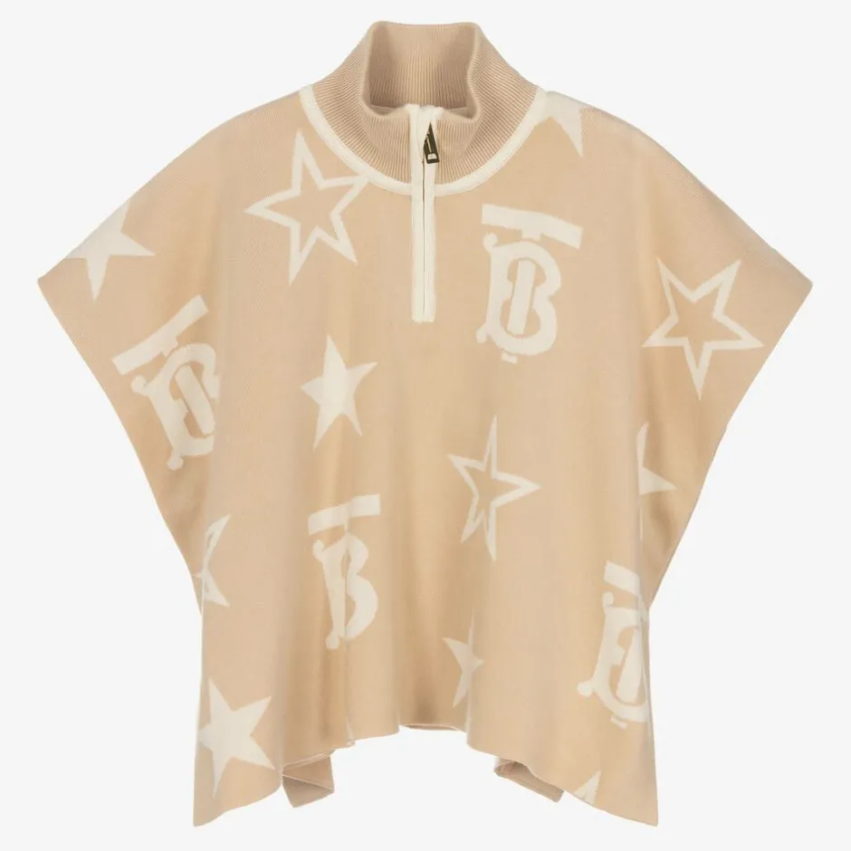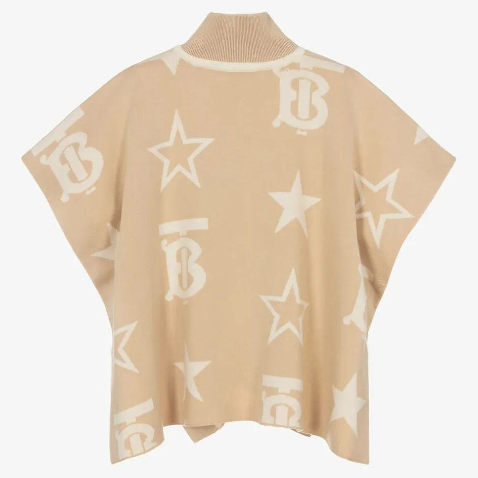 Burberry Baby Girls Beige TB Logo Knitted Cape Best