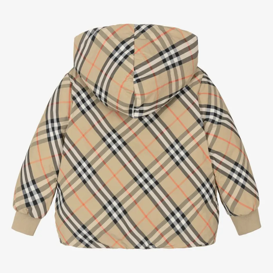 Burberry Girls Beige Check Reversible Down Jacket Hot