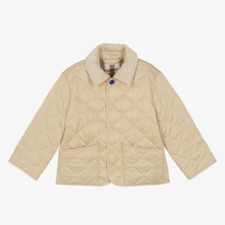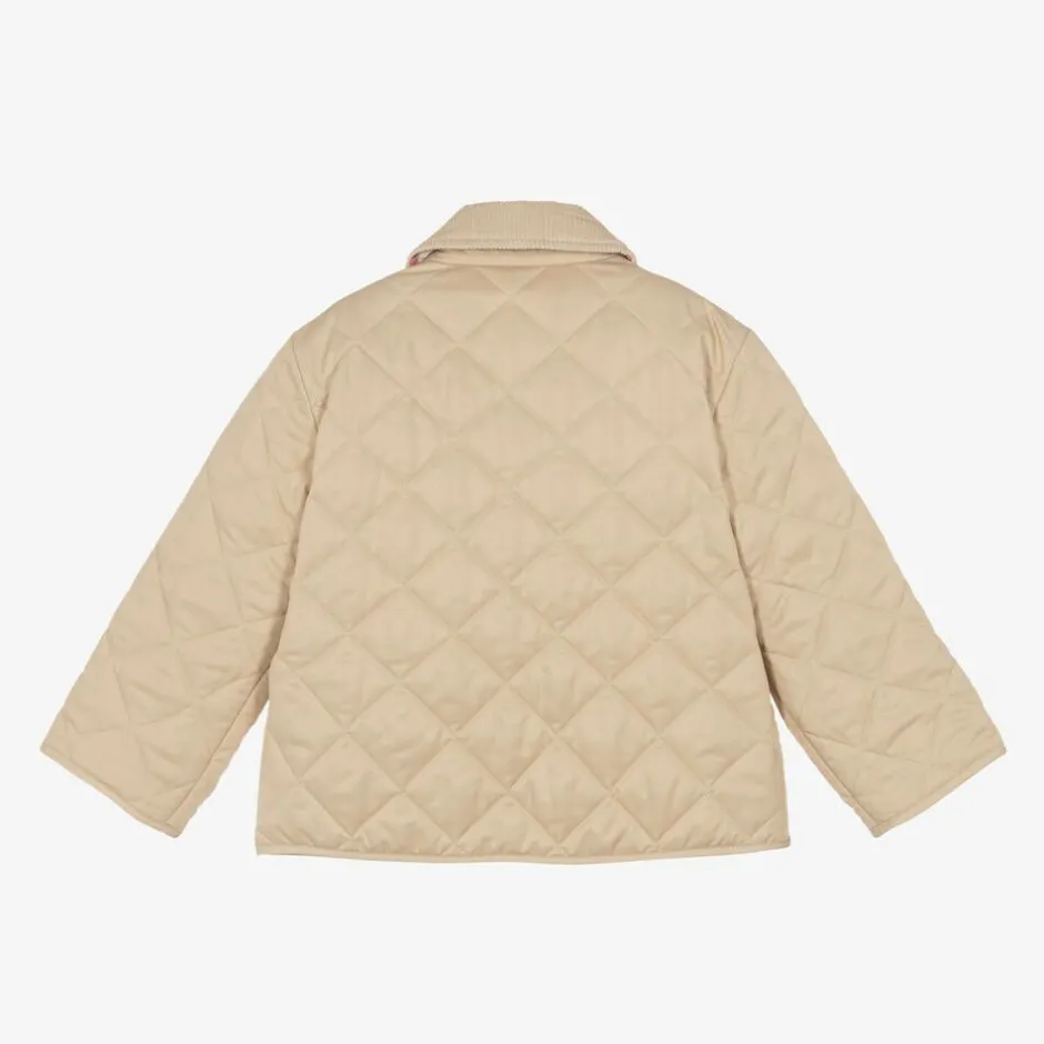 Burberry Girls Pale Beige Quilted Jacket PaleStone Clearance