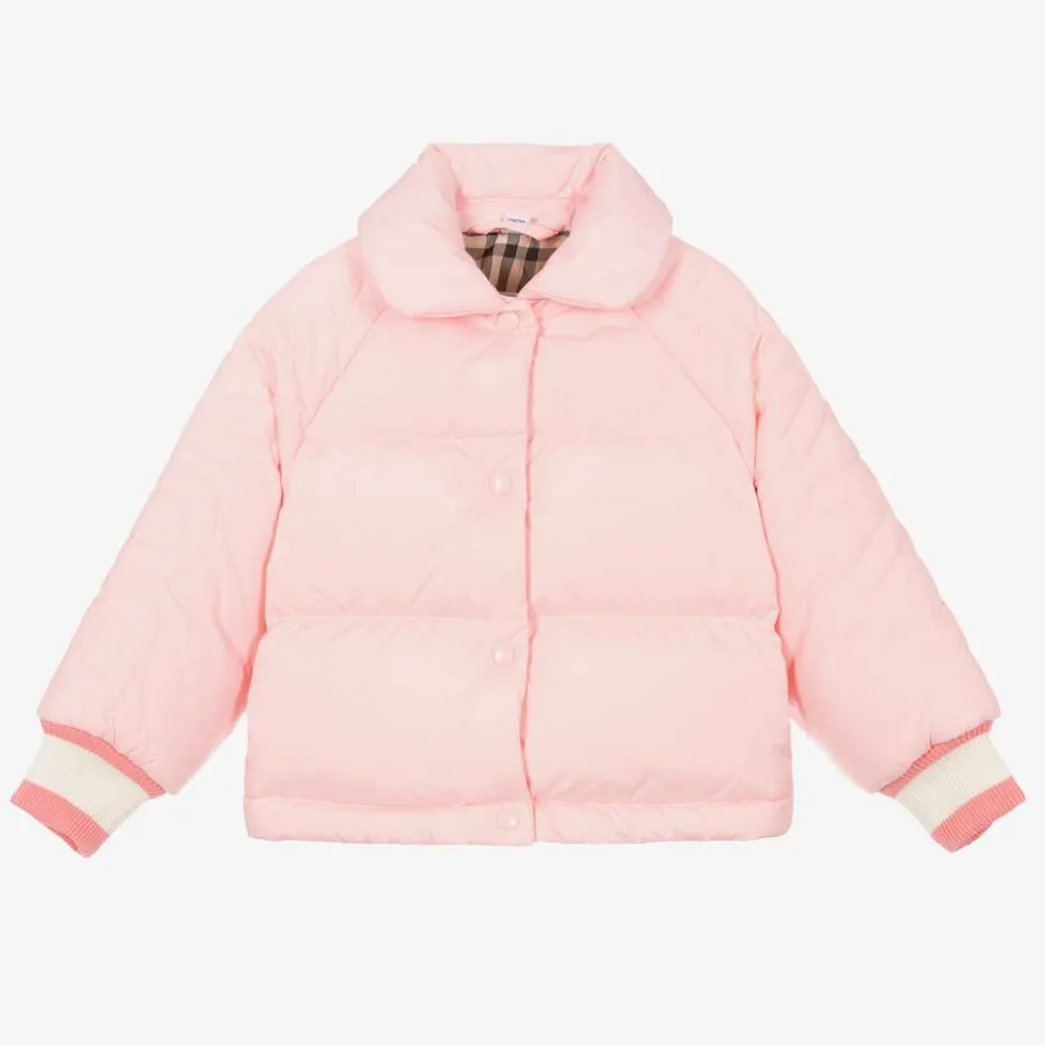 Burberry Girls Pink Down Padded Puffer Jacket Clearance