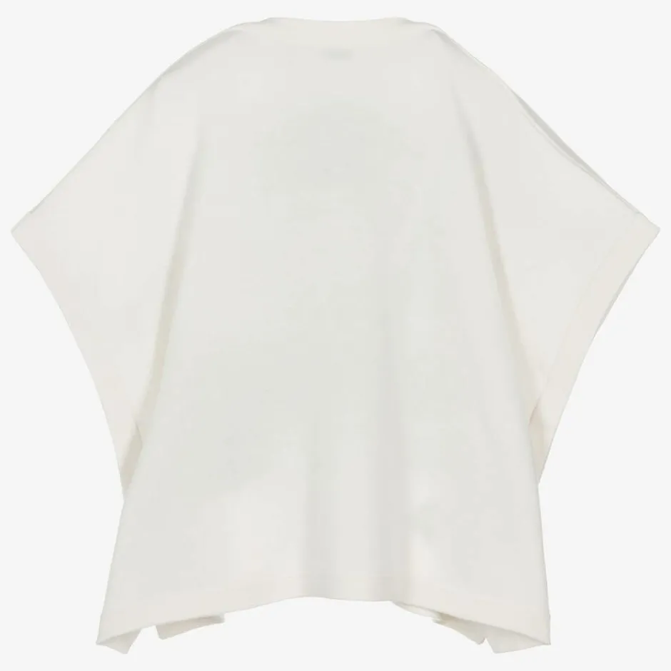 Ivory poncho for boys and girls by British brand Burberry, knitted in a luxurious wool and cashmere blend. Great for creating bold and distinctive looks, this layering piece is patterned with the brand's signature Equestrian Knight Design.