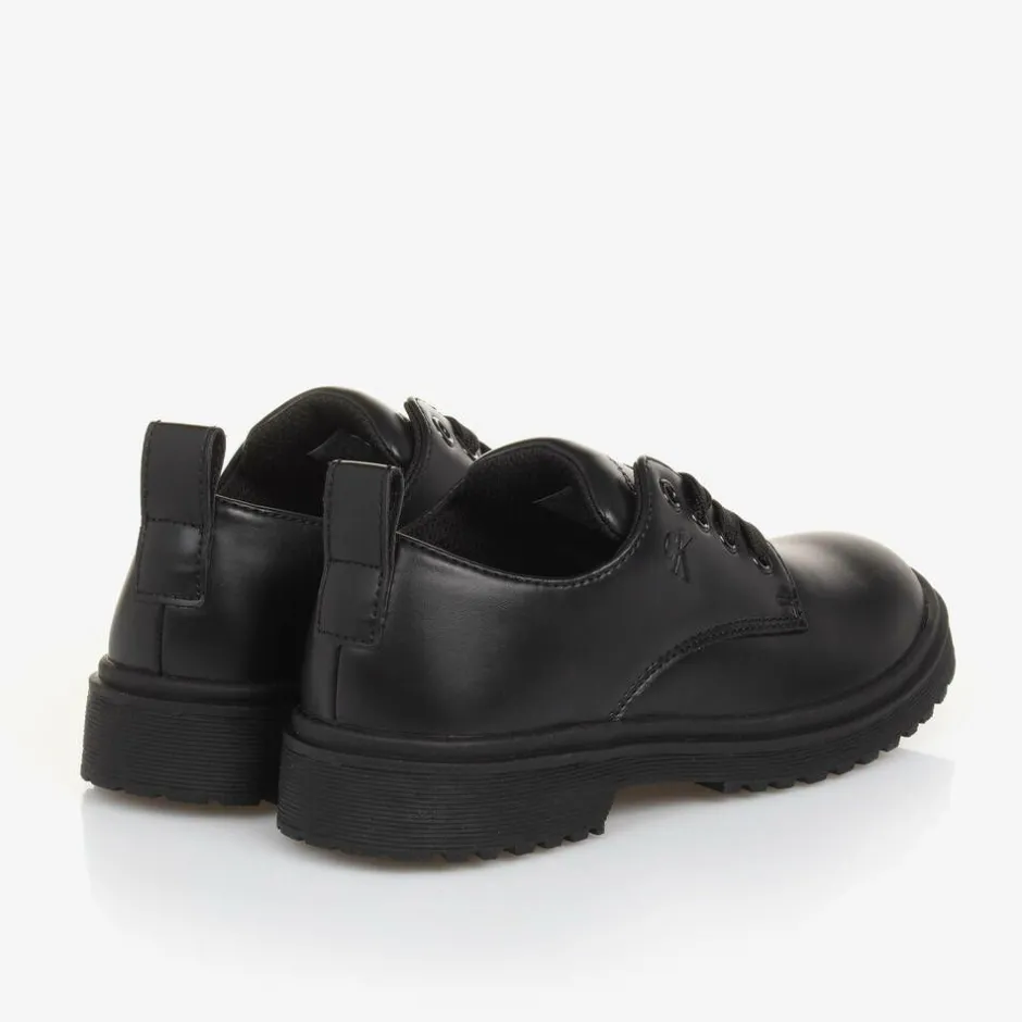 Stylishly smart black shoes for boys and girls from Calvin Klein, made in durable faux leather. These lace-up shoes have a comfortable textile lining and a non-slip rubber sole for grip. This product is made from at least 50% recycled polyester.