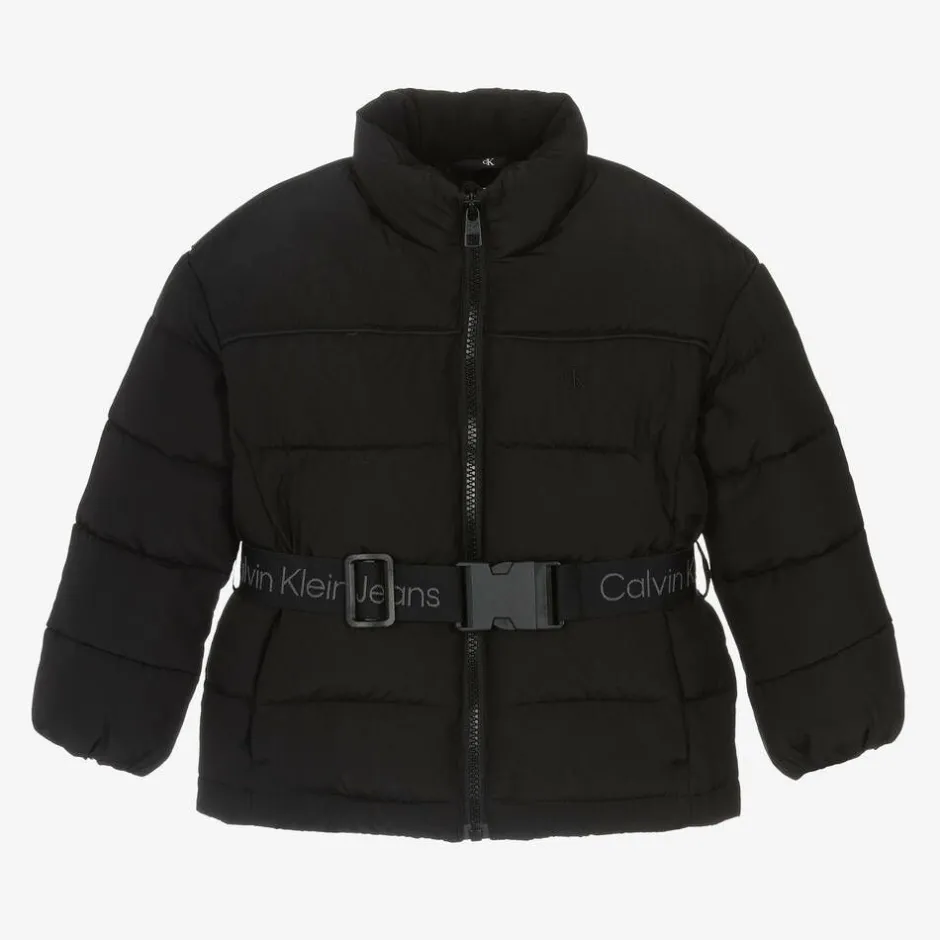 Calvin Klein Girls Black Belted Puffer Jacket Hot