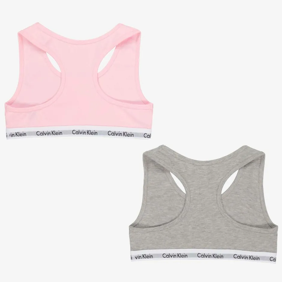 Calvin Klein Girls Pink & Grey Cotton Bralettes (2 Pack) New