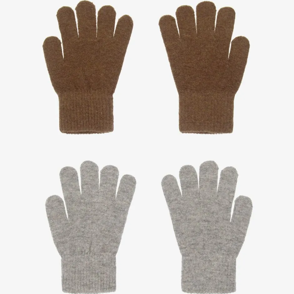 Pack of two, khaki green and grey gloves for boys and girls by Danish brand CeLaVi. Knitted in a super soft wool blend, they will keep little hands cosy and warm.