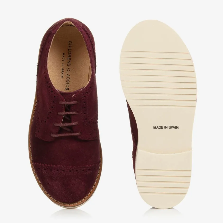 Childrens Classics Boys Burgundy Red Suede Leather Brogue Shoes Hot