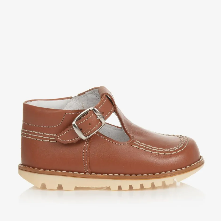 Childrens Classics Brown Leather T-Bar Shoes Hot