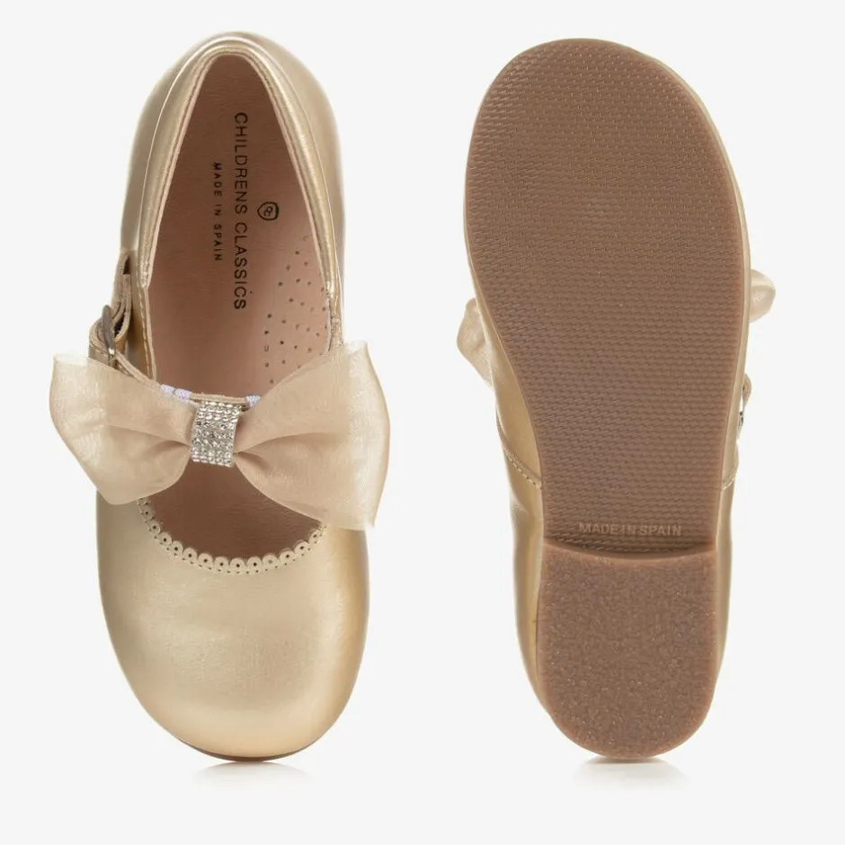 Childrens Classics Girls Gold Leather Bow Shoes Sale