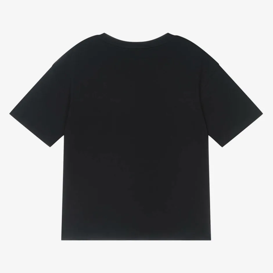 A navy blue T-shirt for girls by French label Chloé, soft and comfortable in organic cotton. Adding a touch of whimsy, the white logo on the front is embroidered in a lovely, intricate design. The dropped shoulders and boxy shape make it a great choice for laid-back days.
