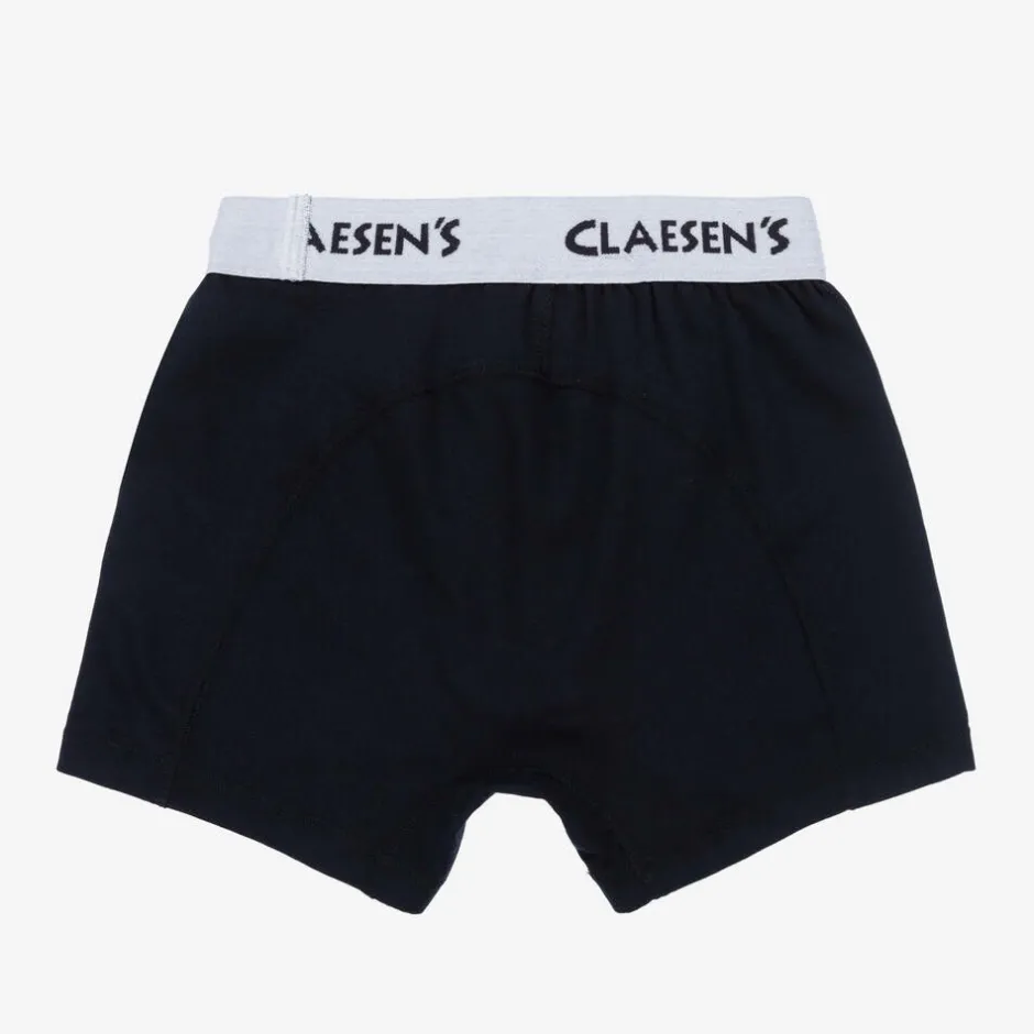 Pack of two navy blue boxer shorts for boys by Claesen's, made in soft cotton jersey. These comfortable boxers have the brand's logo on the waistband for added designer appeal.