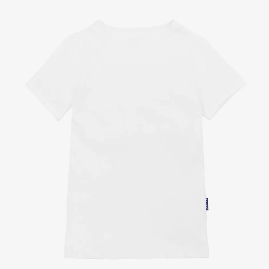 Pack of two white T-shirts for boys by Dutch brand, Claesen's, made in soft cotton jersey. These practical tops can be worn as vests or additional layers for warmth. Each is printed with a logo on the back and has a branded tab on the side seam.