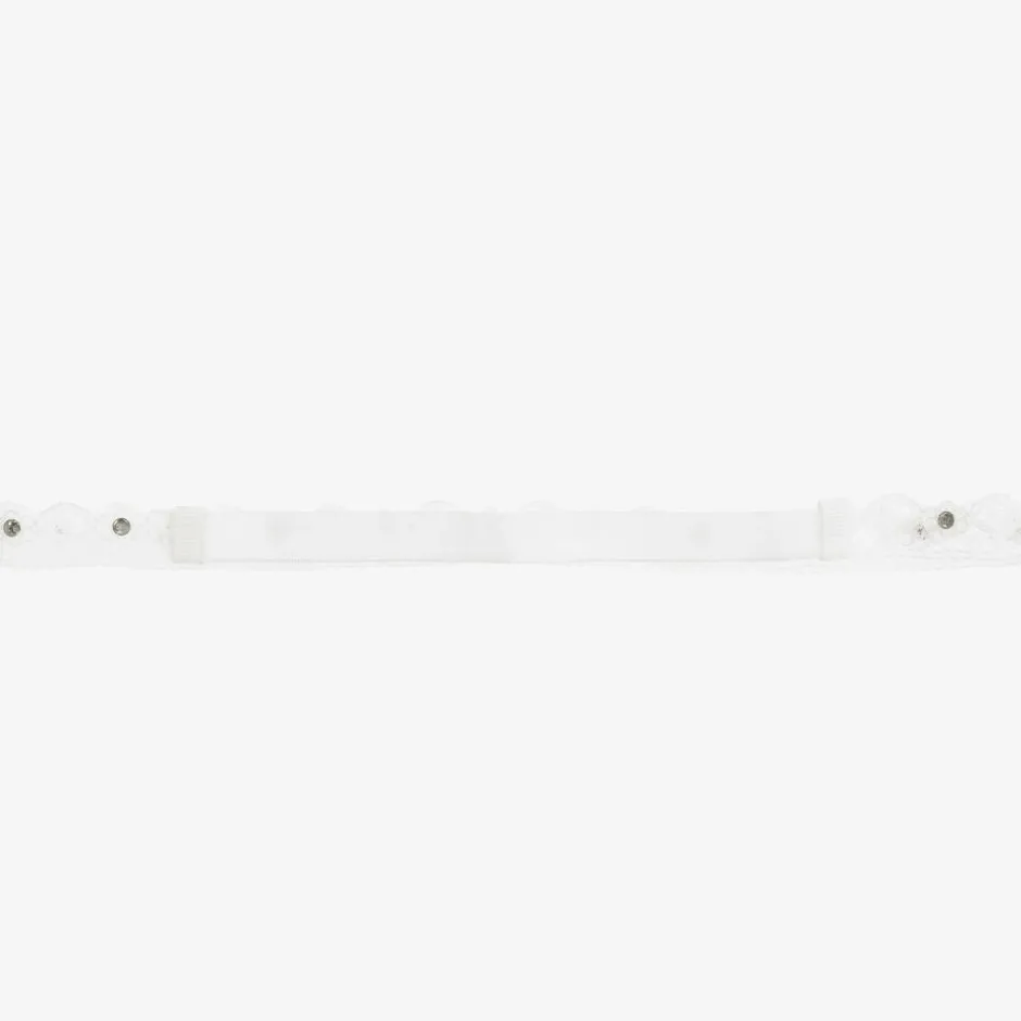 Cute Cute girls ivory lace headband with diamanté. The diamanté studs are attached to a soft, very stretchy ivory lace elastic band.