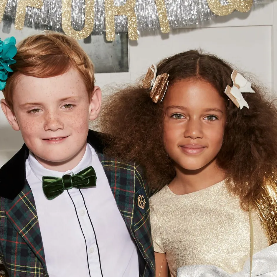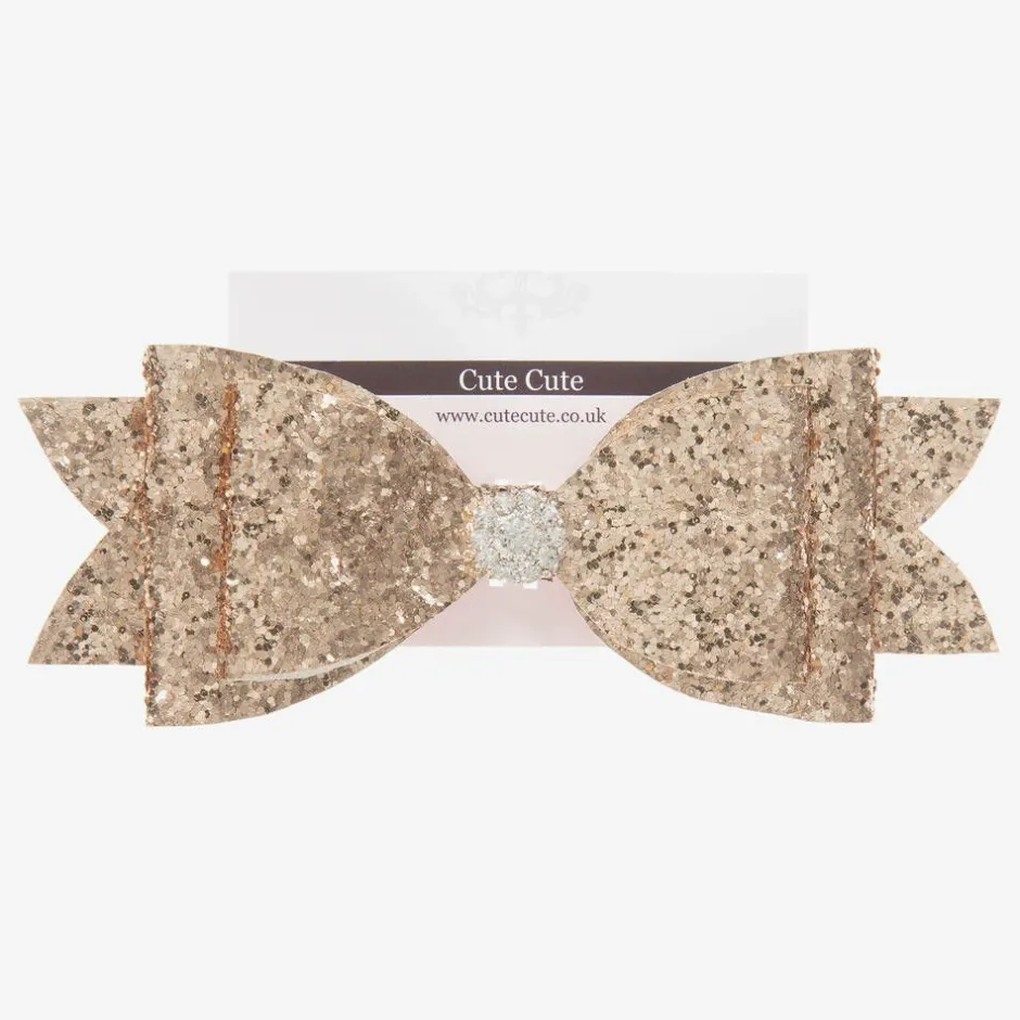 A lovely handmade hairclip by Cute Cute. Perfect for dressing up an outfit, this hair clip has glitter and diamante bow details.