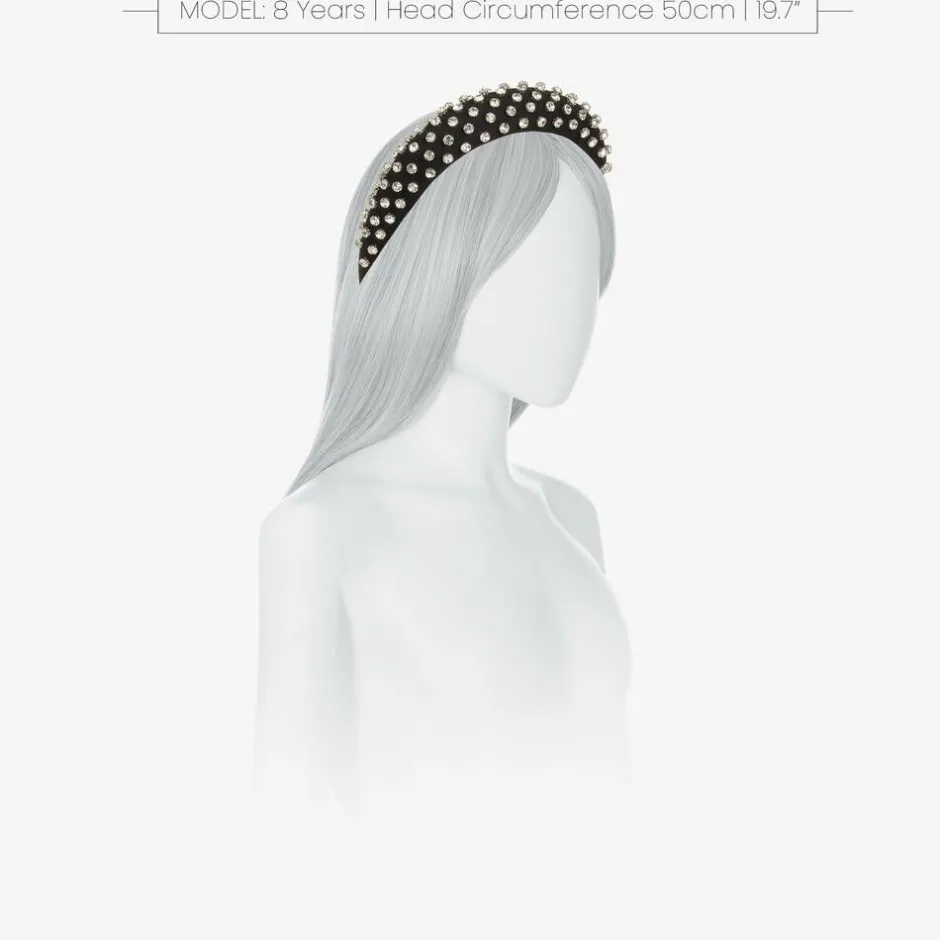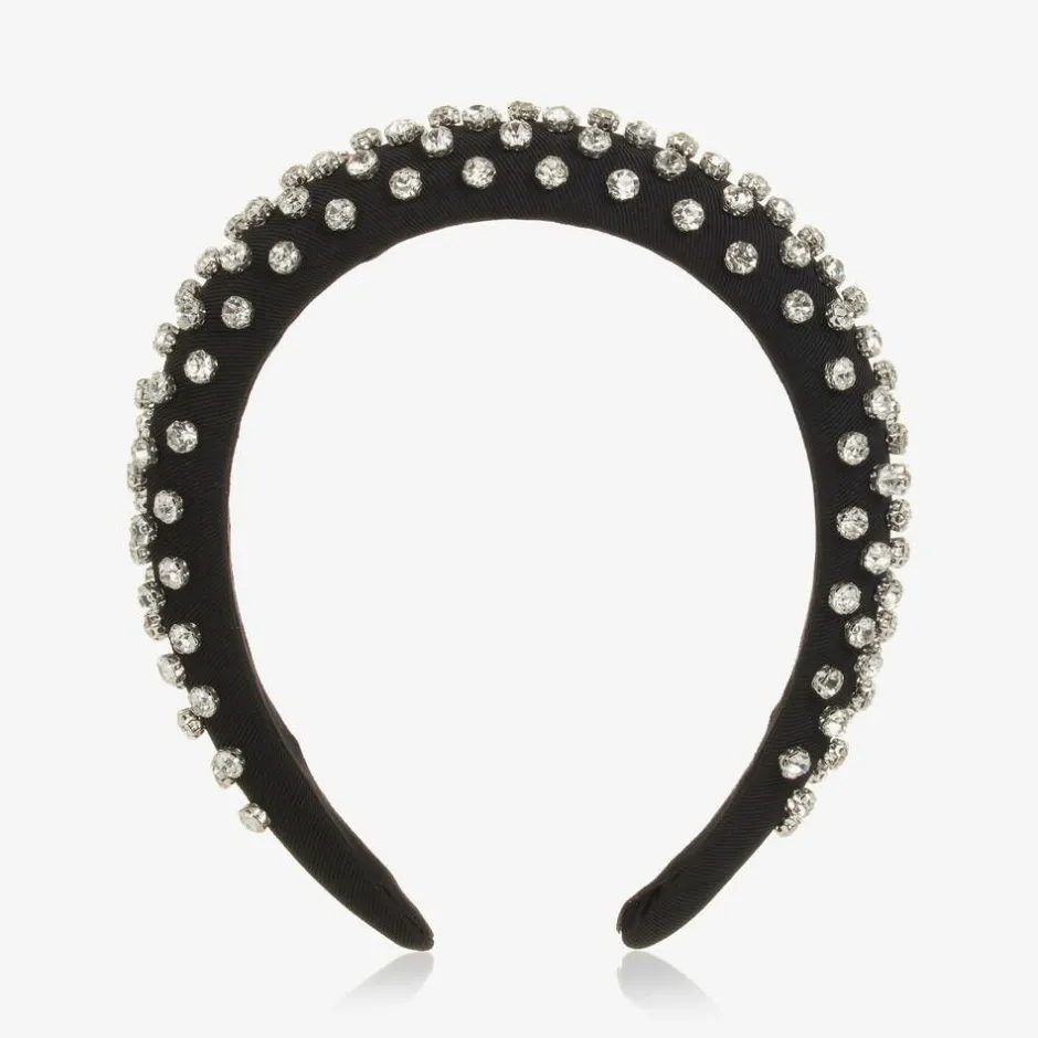Stylish black hairband for girls from David Charles. The fabric-covered flexible band is padded and embellished with diamantés for a touch of sparkle.