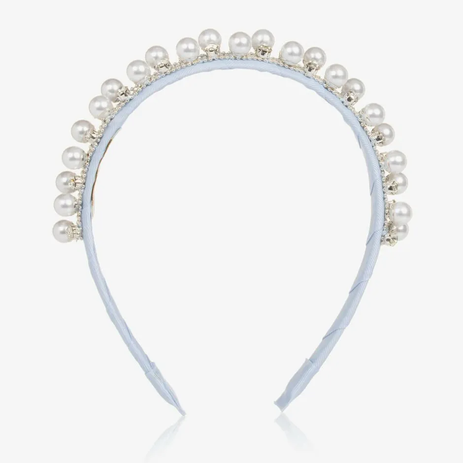 David Charles Girls Diamanté & Pearl Blue Hairband Outlet