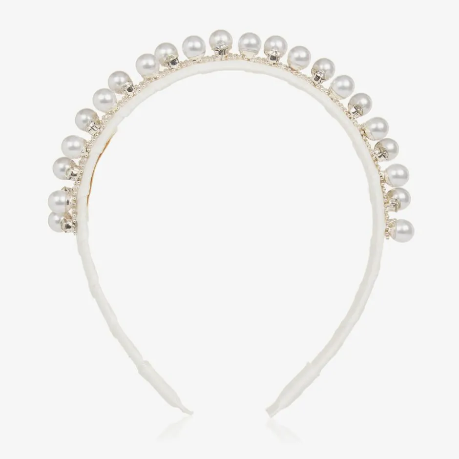 David Charles Girls Diamanté & Pearl Ivory Hairband Outlet