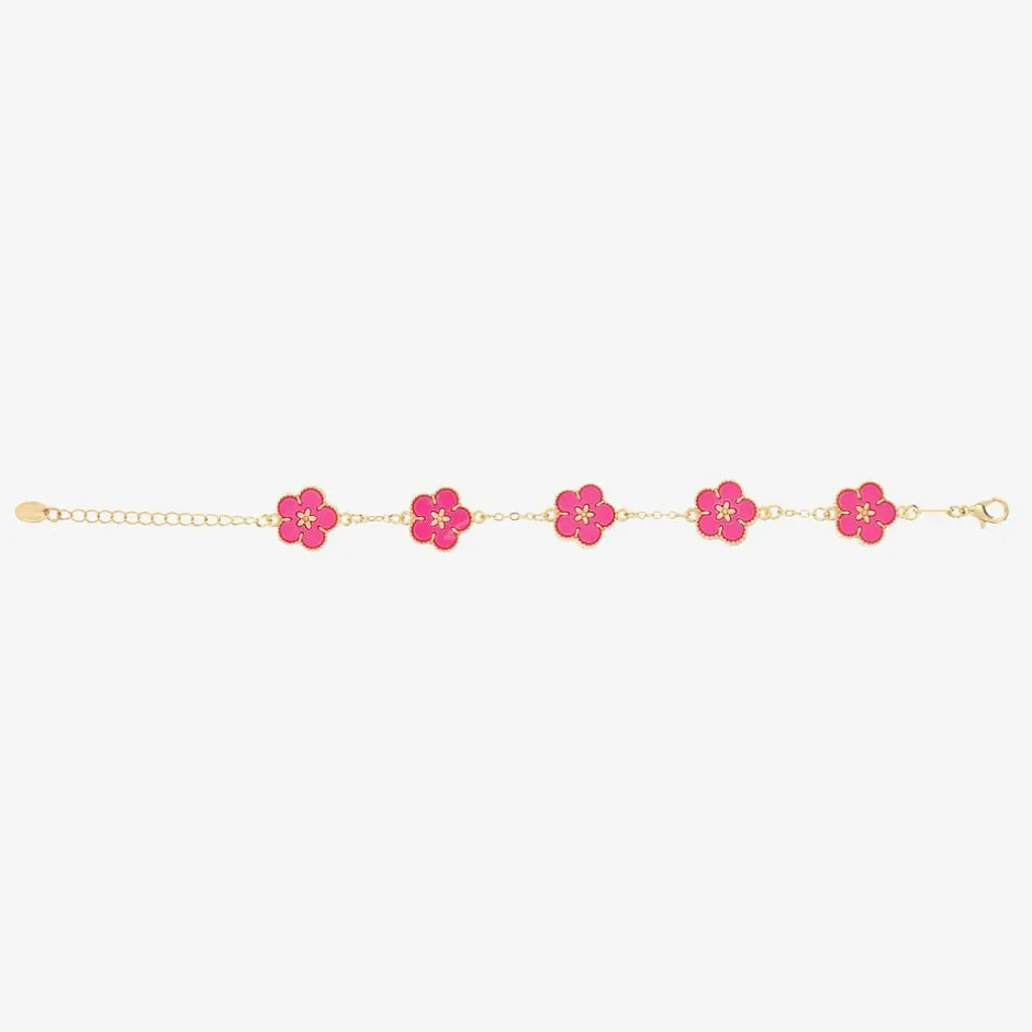 David Charles Girls Gold & Pink Flower Bracelet New