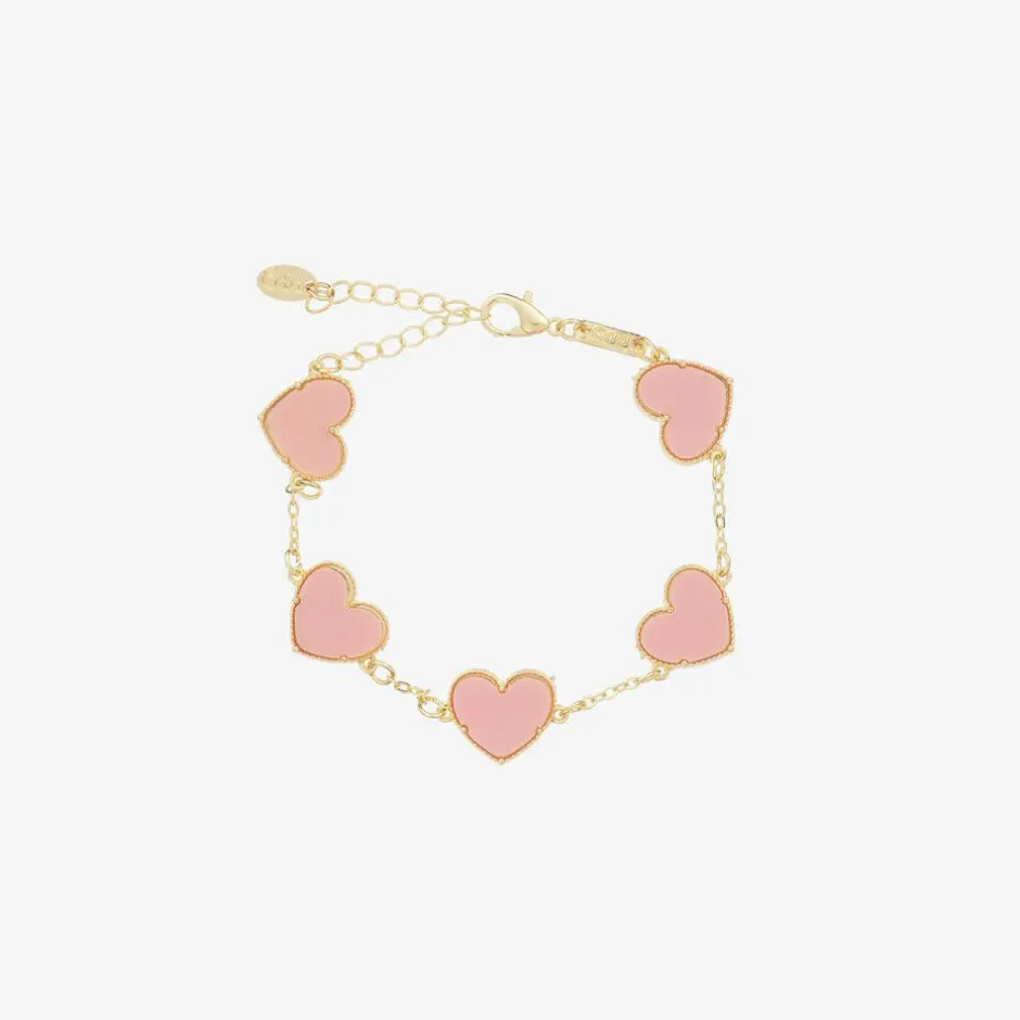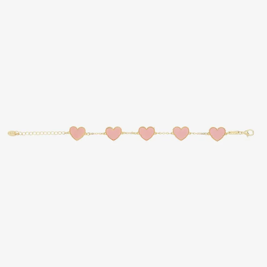 David Charles Girls Gold & Pink Heart Bracelet Clearance