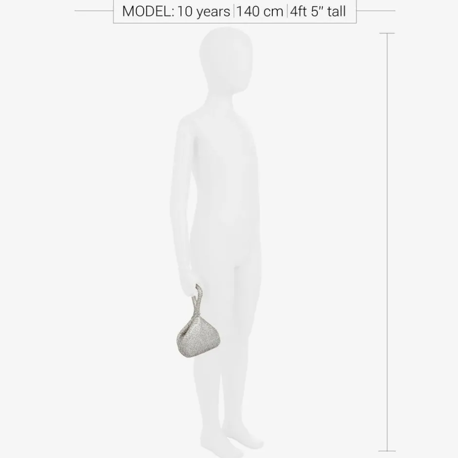 Shaped like a shimmering droplet, this stunning silver handbag for girls is designed by British designer, David Charles. Adorned with sparkling silver rhinestones, this gorgeous accessory has a small, satin-lined zipped compartment and a carry handle. Both ends of the zip fasten together with a magnetic popper, forming the unique shape.