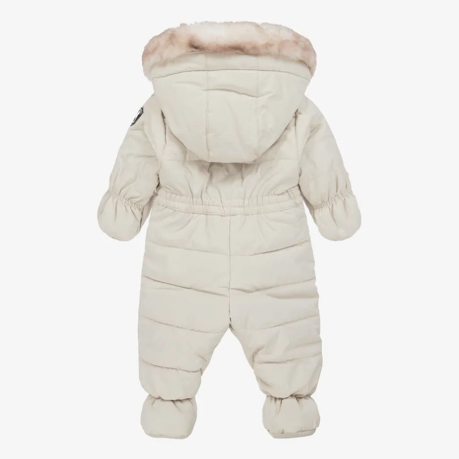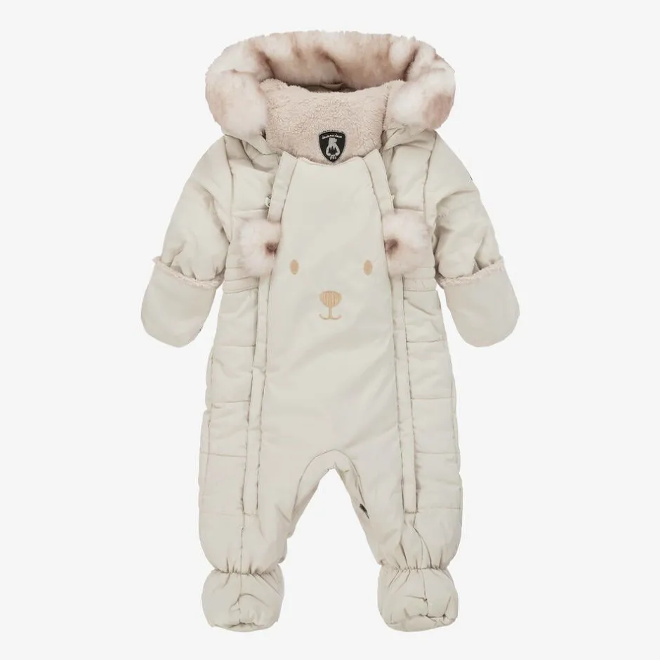 Deux par Deux Beige Bear Snowsuit & Neck Warmer Set Discount