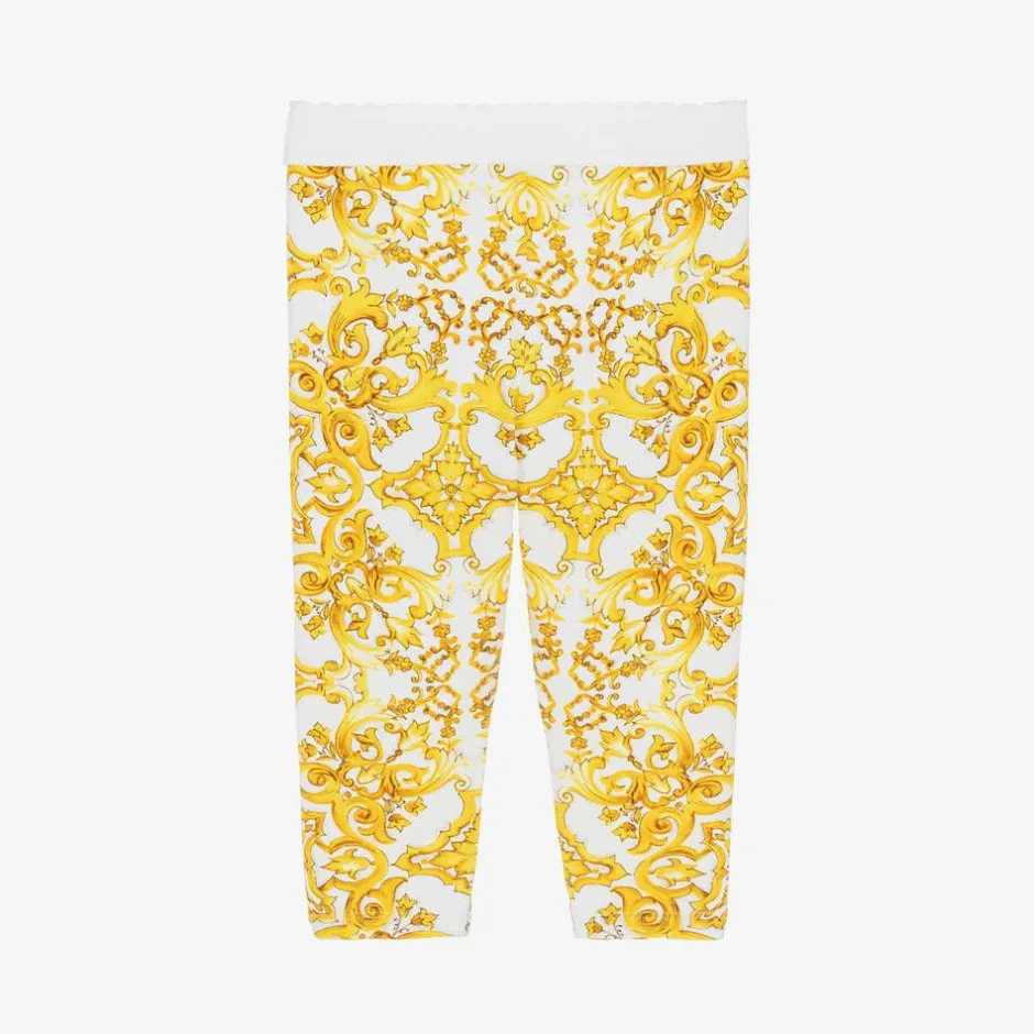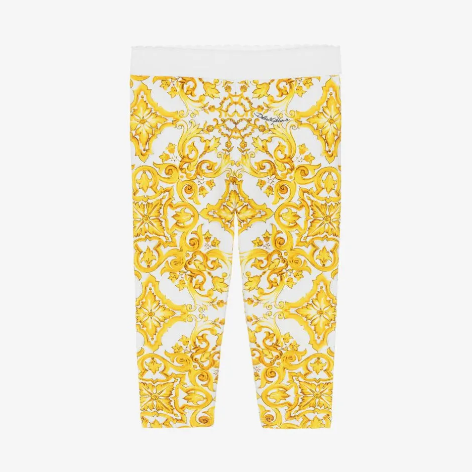 Dolce amp; Gabbana Baby Girls Yellow Majolica Print Cotton Leggings Best