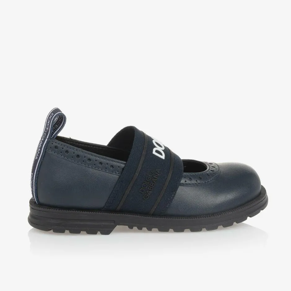 Dolce amp; Gabbana Girls Navy Blue Leather Shoes Clearance