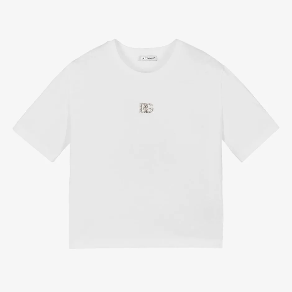 Dolce amp; Gabbana Girls White Cotton DG T-Shirt Sale