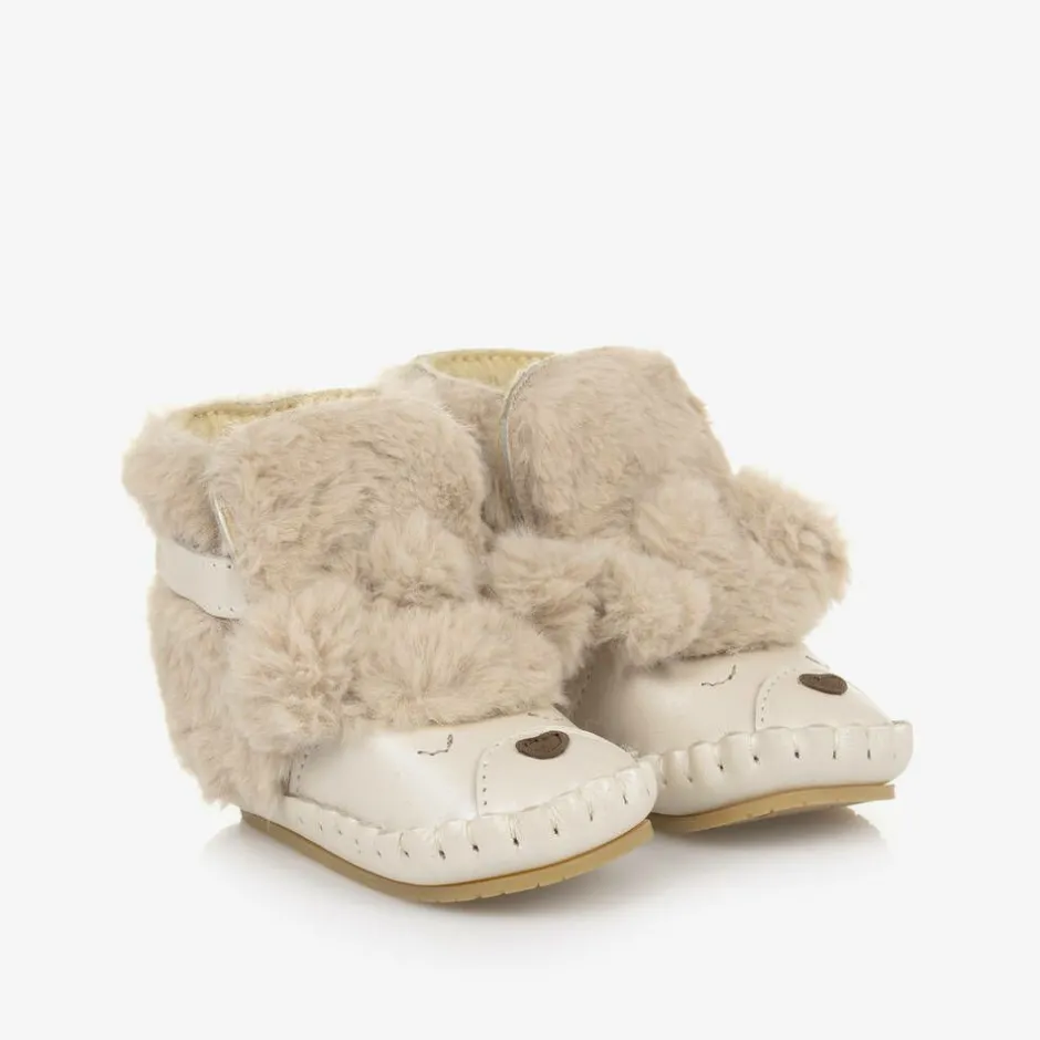 Donsje Beige Leather & Faux Fur Poodle Pre-Walkers LightBeige Outlet
