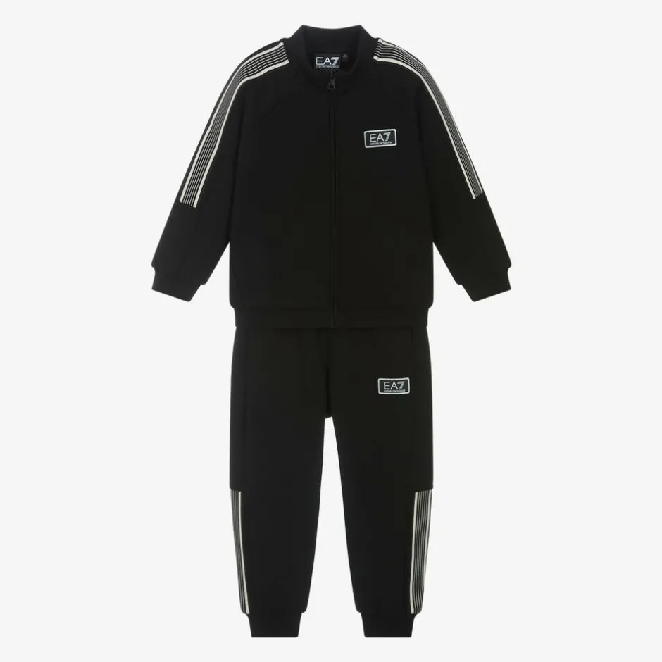 EA7 Emporio Armani Boys Black Zip-Up Tracksuit New