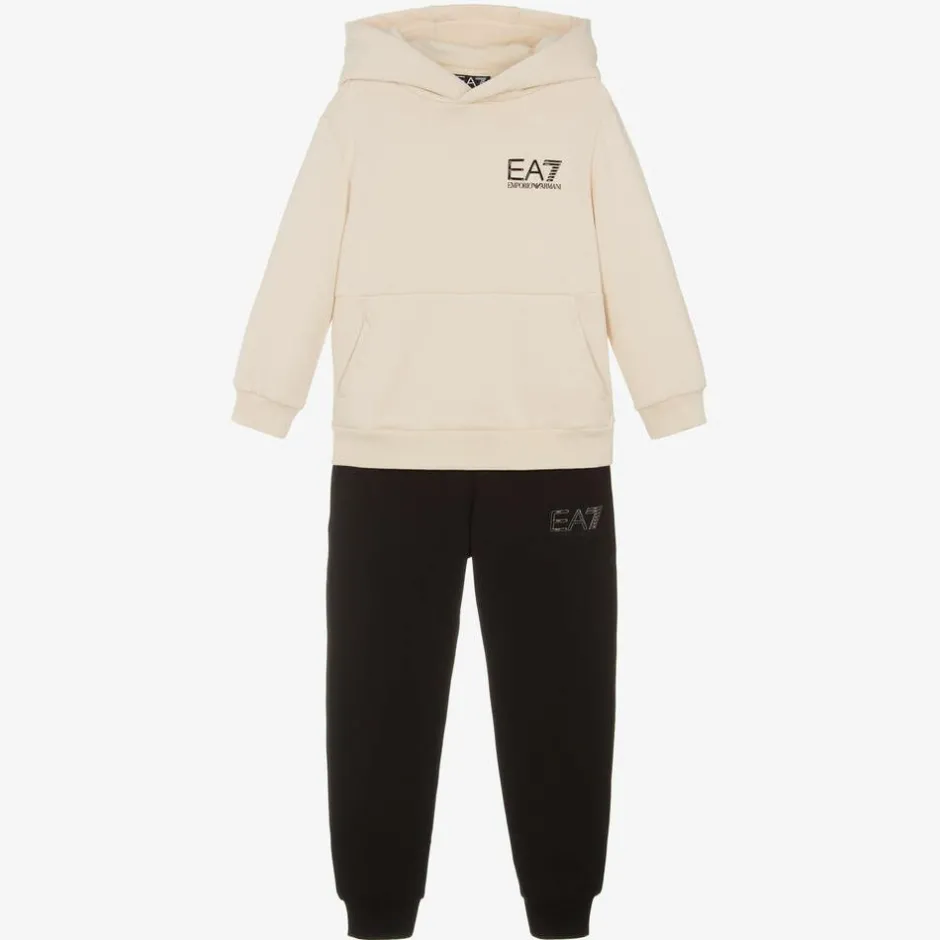 EA7 Emporio Armani Boys Ivory & Black Cotton Tracksuit Hot