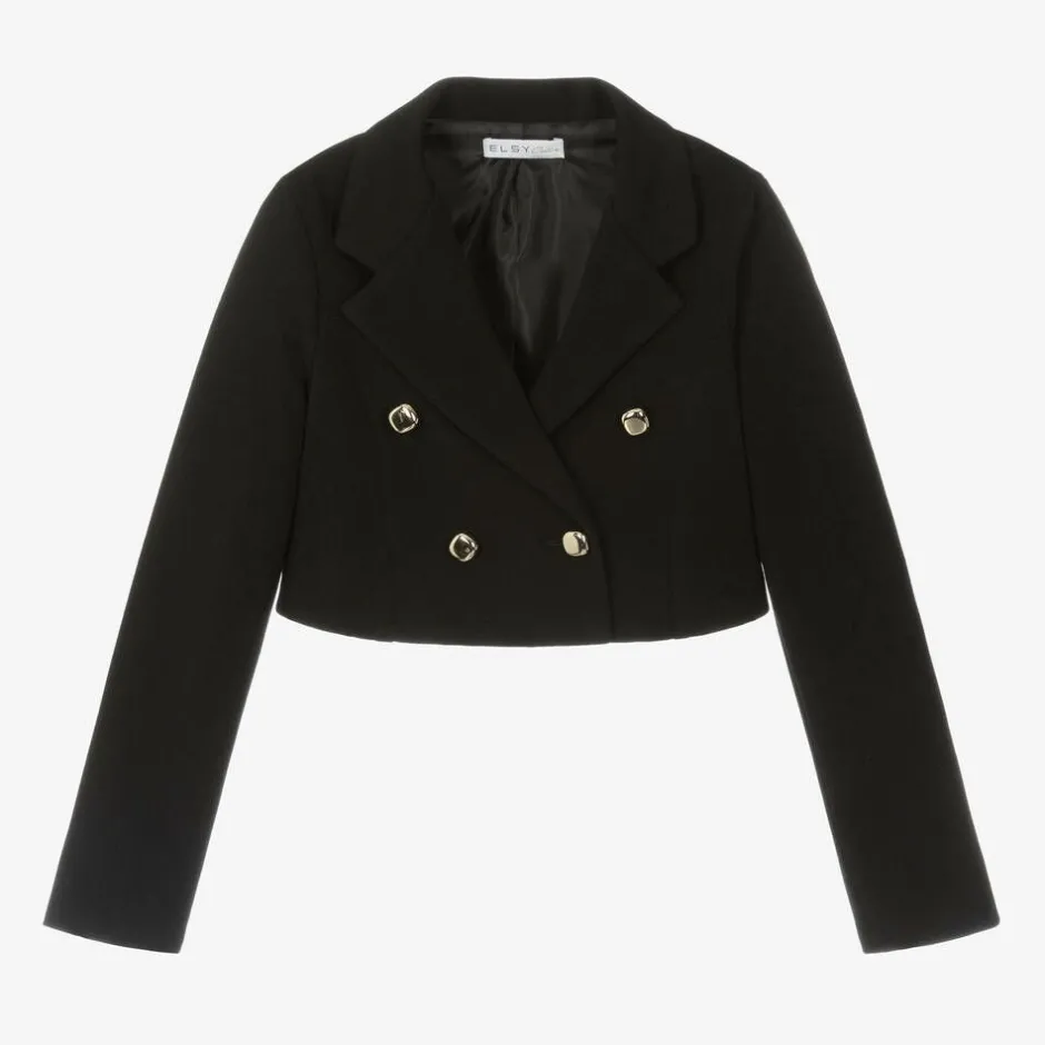 Elsy Girls Black Crêpe Jersey Cropped Blazer Best