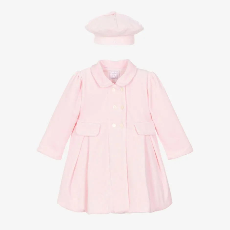 Emile et Rose Baby Girls Pink Velour Coat & Hat Set New
