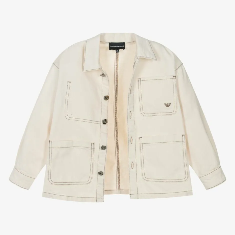 Emporio Armani Boys Ivory Cotton Twill Jacket Clearance