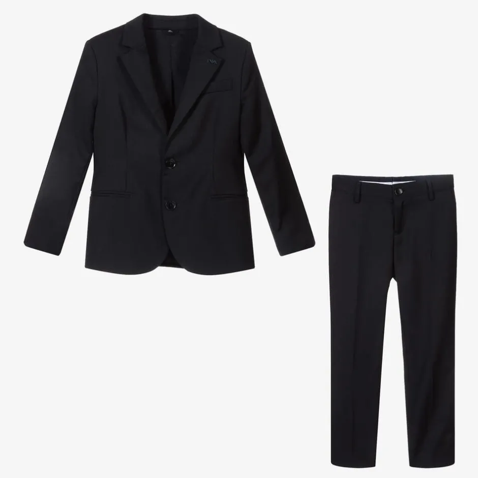 Emporio Armani Boys Navy Blue Wool Single-Breasted Suit Best