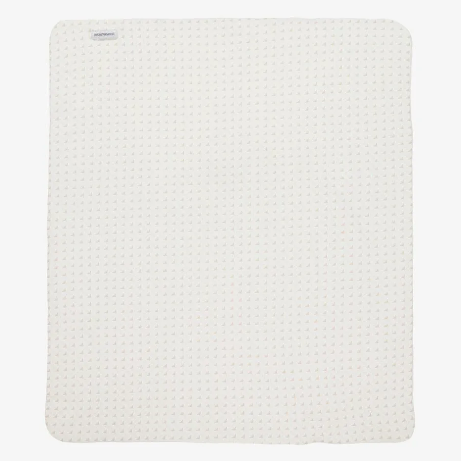 A beautiful ivory and beige padded blanket for baby boys and girls by Italian brand Emporio Armani. For instant designer appeal, it is printed with the signature Eagle logos. Made in soft and gentle cotton jersey and lightly padded for comfort, the blanket is an ideal surface on which to lay baby and makes a lovely nursery accessory.