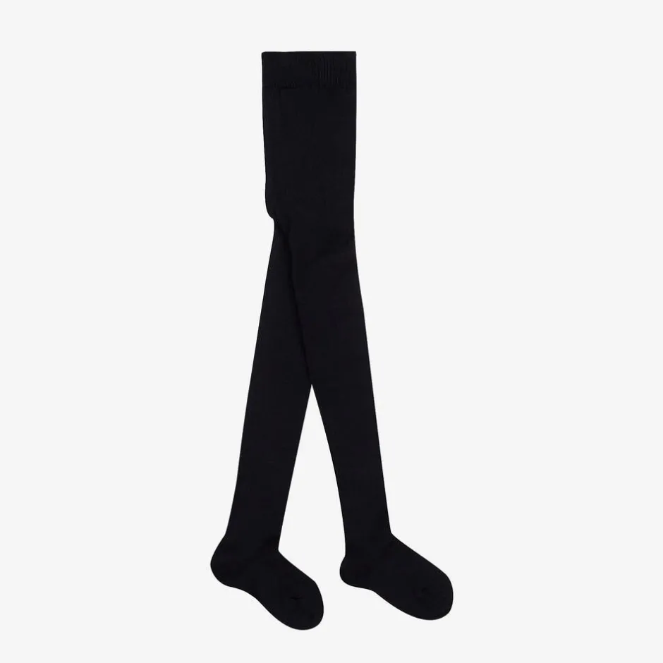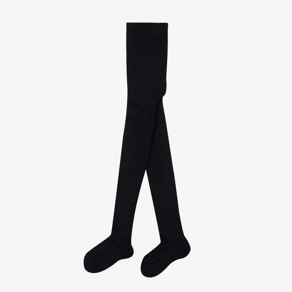 Navy blue tights for boys and girls by Falke, knitted with wool on the outside for warmth and cotton on the inside for comfort. The waist is elasticated for a secure fit and for durability, they have reinforced stress zones.